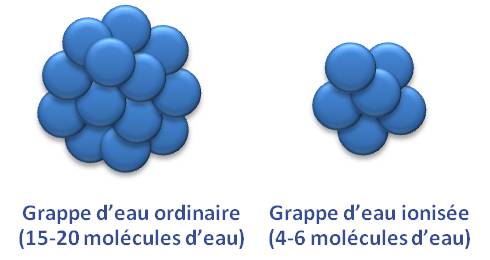 Le processus d’ionisation brise les liens électriques entre les molécules et les réorganise en grappes de 5 à 6 molécules. Ces plus petites grappes signifient que l’eau est plus facilement assimilable par les cellules. L'eau ionisée procure une meilleure hydratation que d'autres types d'eau et aide à dissoudre et à éliminer les déchets solides et les toxines qui se sont accumulés dans notre corps au fil des ans.
